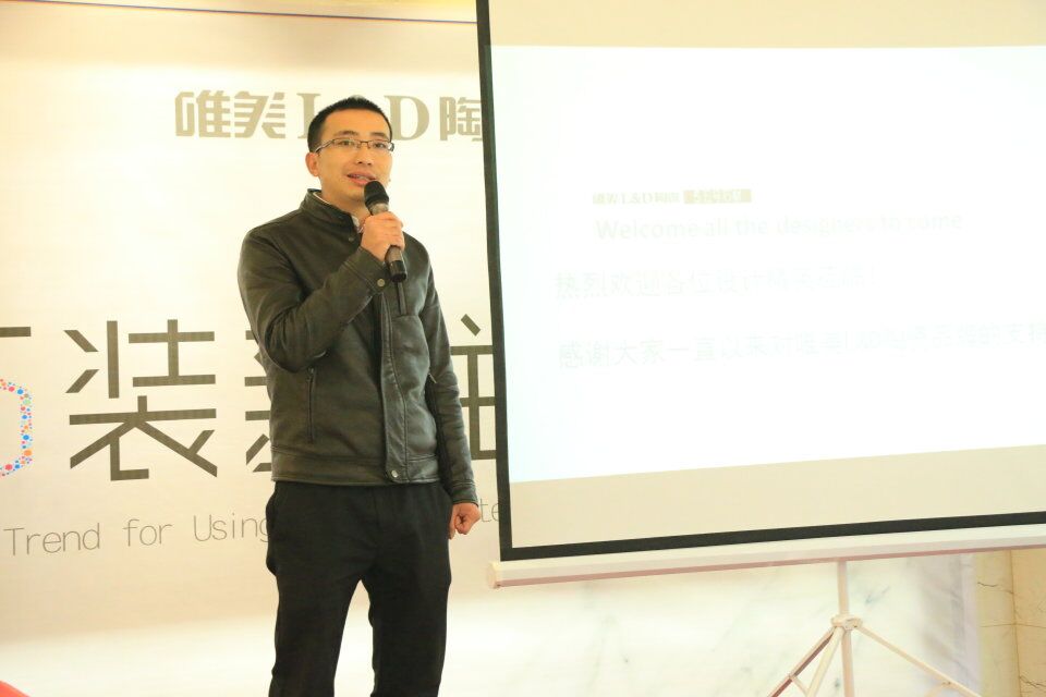 昭通唯美L&D陶瓷總經理馬興堅先生上臺致歡迎辭,歡迎參加活動的各位賓客,感謝各位設計師朋友們長期以來對唯美L&D陶瓷的厚愛與支持,并承諾會一如既往地為廣大設計師朋友們提供最好的產品和服務。